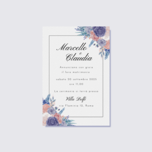 Rose bianche, viola e rosa. Una palette elegante, dai colori intensi e decisi. Questo coordinato può essere abbinato a buste bianche o colorate. La stampa può essere effettuata su carta lavorata o liscia. Per una resa ottimale utilizzare una carta bianca.