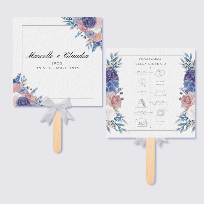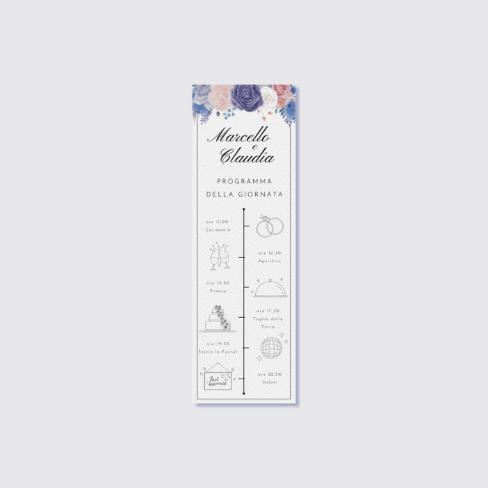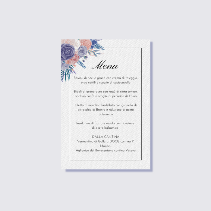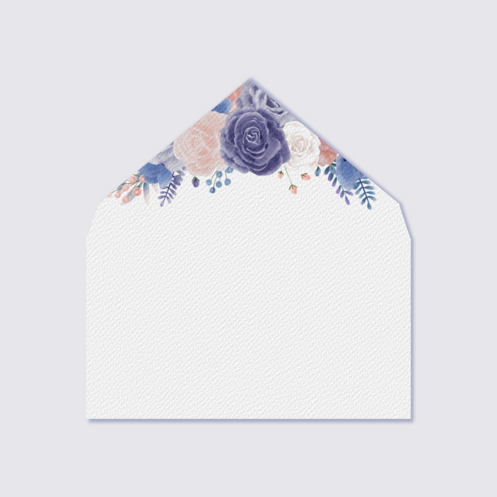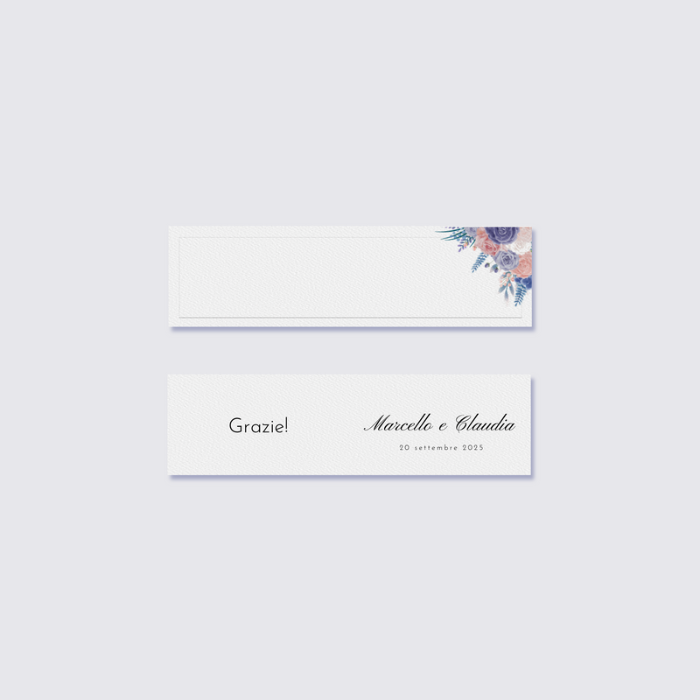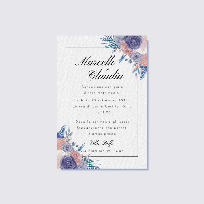 Rose bianche, viola e rosa. Una palette elegante, dai colori intensi e decisi. Questo coordinato può essere abbinato a buste bianche o colorate. La stampa può essere effettuata su carta lavorata o liscia. Per una resa ottimale utilizzare una carta bianca.
