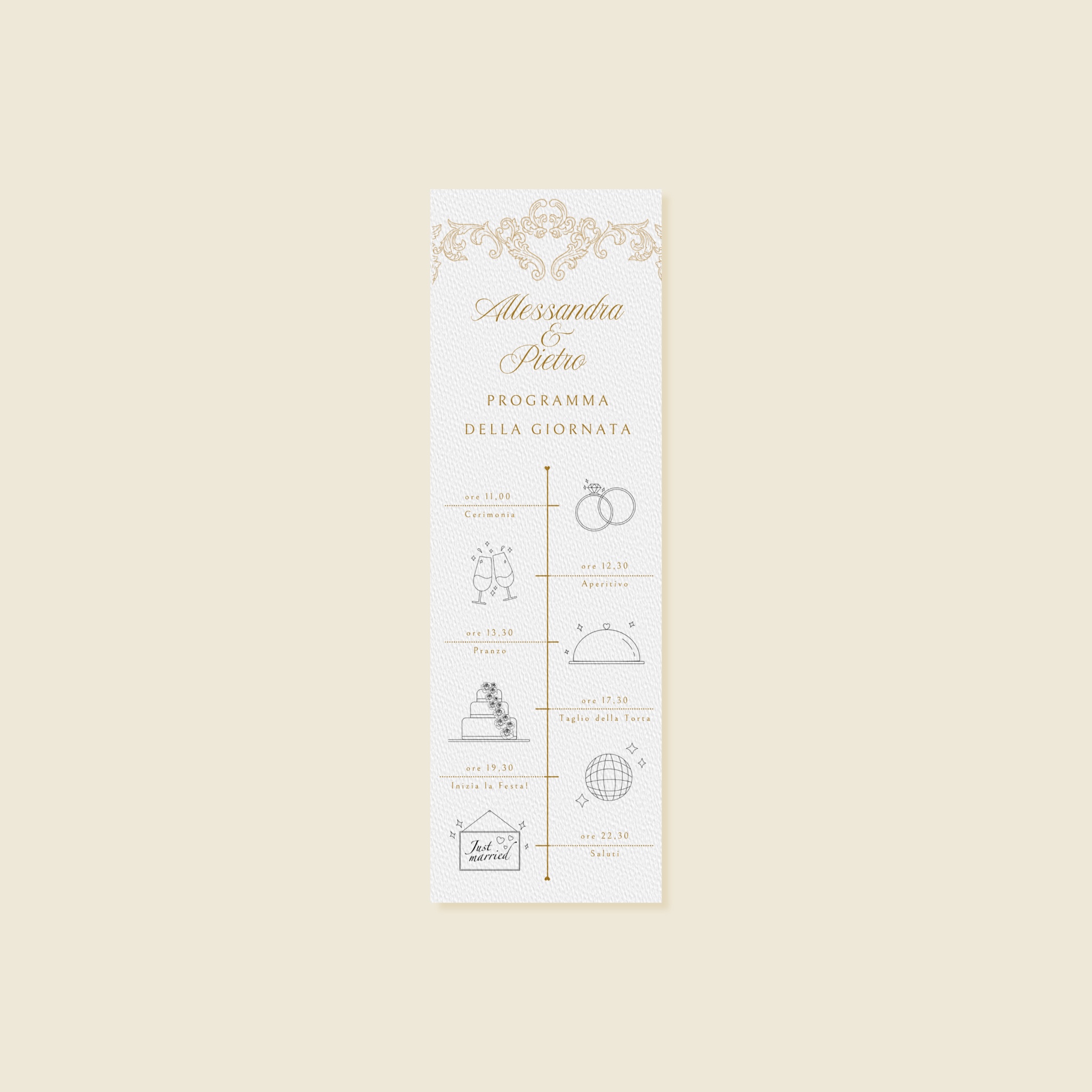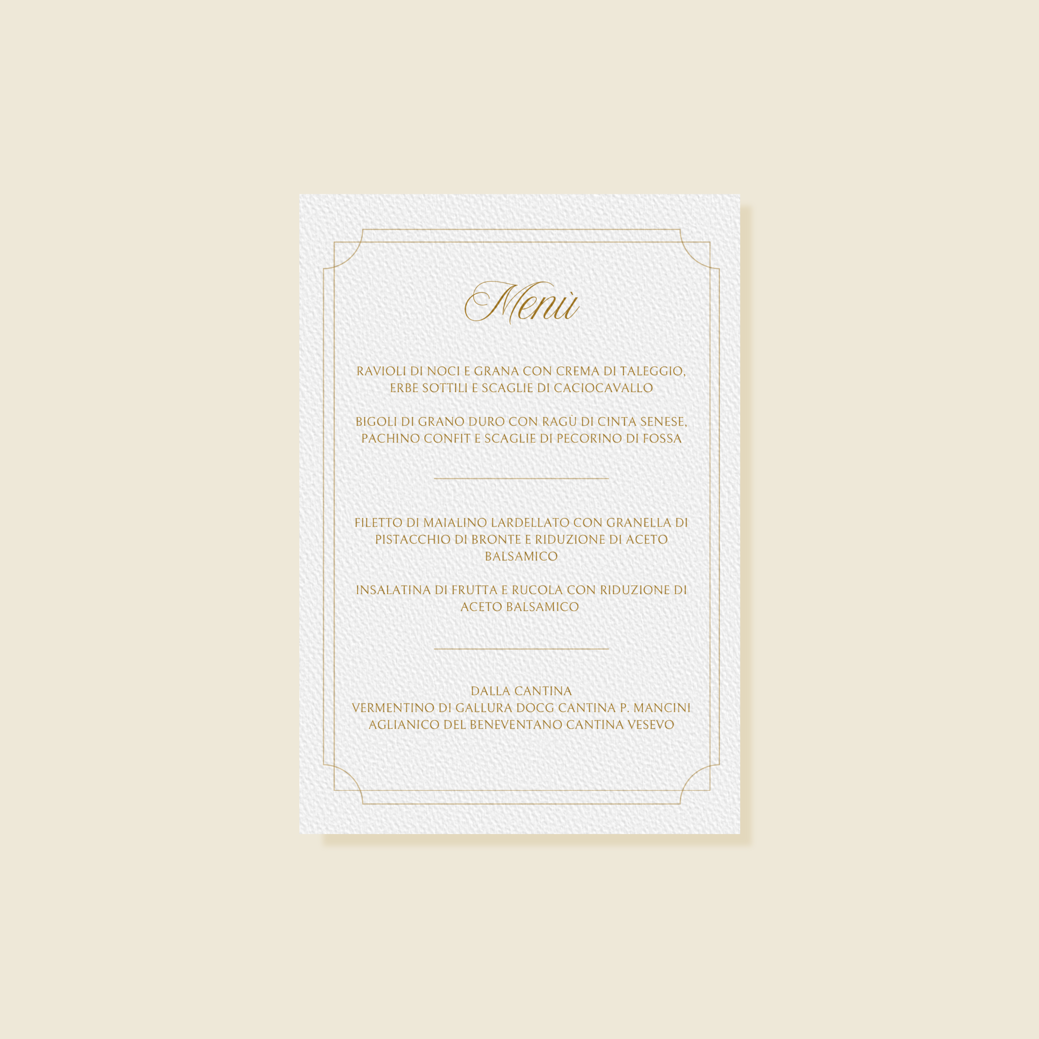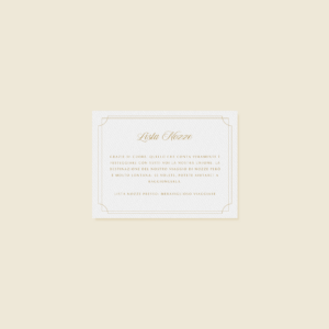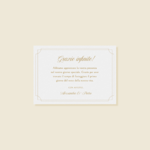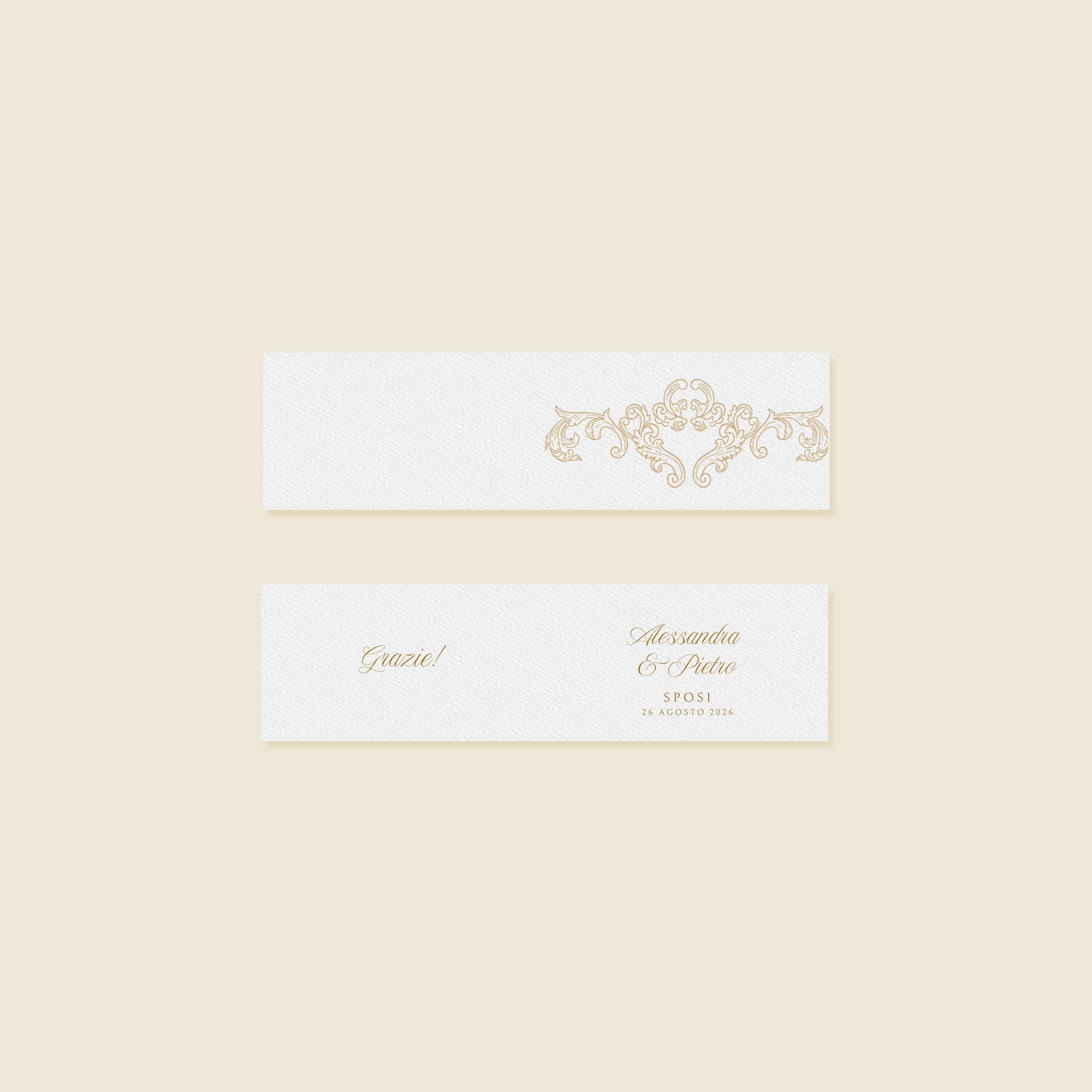 Magnolie diamanti e upupe si fondono in un design intramontabile con dettagli barocchi. I toni dorati delle partecipazioni si abbinano perfettamente sia a carta liscia che lavorata. Ideale per un matrimonio sofisticato, può essere abbinato a buste avorio o artigianali.